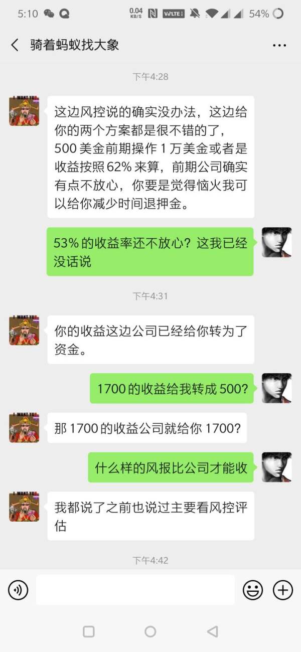 考核一个月他们说的,1000美金账户我做到2700还让我考第二次,还让我交押金,53%的收益率,他跟我说过不了风控评估,我就呵呵
