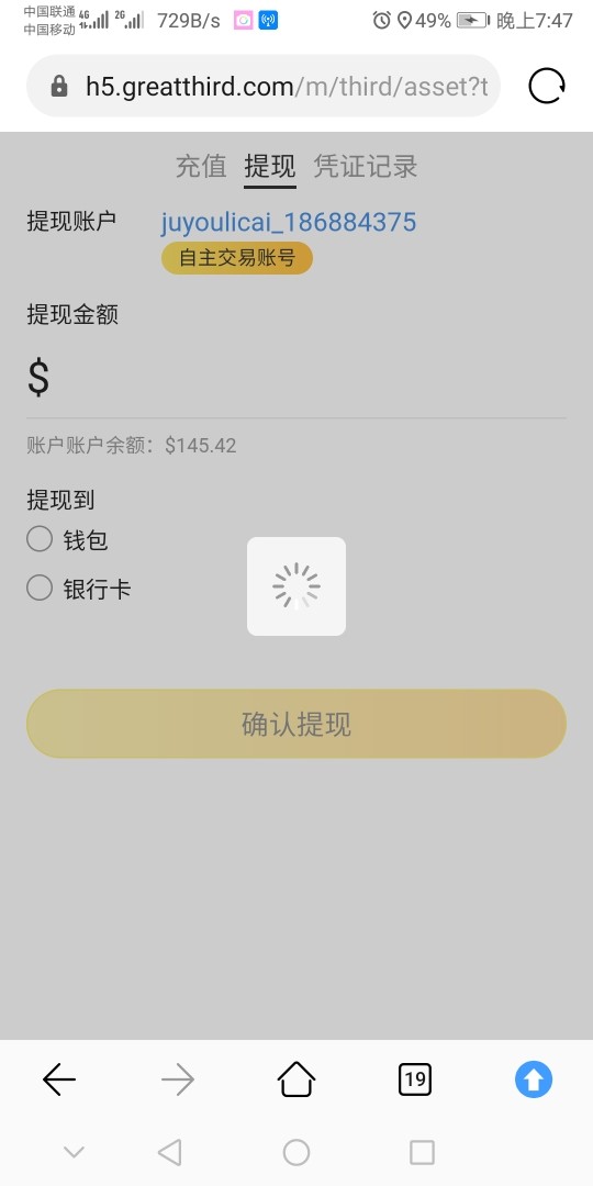 只要点出金,界面就一直转圈圈,不管尝试多少次都一样。