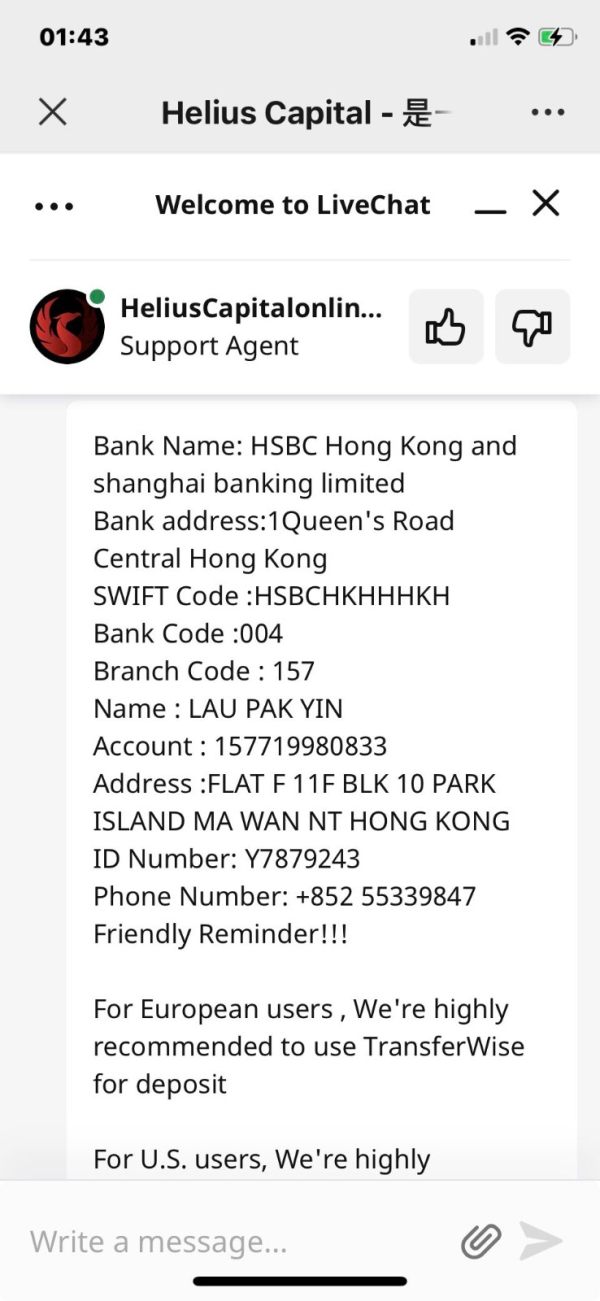 在Instagram聊天软件上骗子主动和我聊天,由于有共同的朋友就加了好友,又改到微信聊天(由于微信是实名制),最后又让我到WhatsApp上聊天(这个对方可随时消失)。第一步:对方采取温馨聊天,每天嘘寒问暖; 第二步:炫耀他有钱,会做黄金期货,并不断上传他的盈利收入; 第三步:利用他自己制作的假平台,让你入金、盈利、教你如何出金,取得对平台的信任 第四步:说今年黄金有大机会,不断的让你入金; 第四步:给你做出承诺,多长时间盈利多少; 第五步:当年发现不对想出金时,提出要交易流水达到入金总额的2.5倍方可出金; 第六步:在假平台上任意操弄价位,让你无法转到钱,不断的割肉、割肉 第七布:当发现平台交易与正规盘相差甚远提出异议被戳穿时,把账上的钱清空,跑路。 大家如有类似的经历,马上终止入金交易。 以下附图分别是:标榜晒金、引导入金、将入金转入同伙账户、香港诈骗同伙账户。最后是骗子的照片。 希望大家引以为戒。