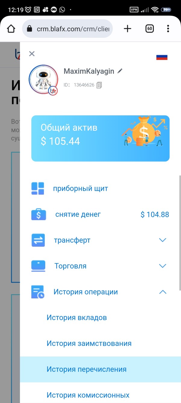 Зашел на платформу через реферальную систему, через недолгое время (1.5 недели) объявили об акции на удвоенное пополнение счета, после этого счёт не пополнялся, а все манипуляции со счётом заблокировали, хотя я сопричастности к этой акции вообще не имел. На данный момент не могу ничего сделать со своим счетом, вывод денег просто висит на рассмотрении, поддержка сайта не отвечает по сути - ничего, либо перенаправляет в телеграмм канал @blafx3 к сотруднику, который также не отвечает, что в его рабочие часы, что не в рабочие