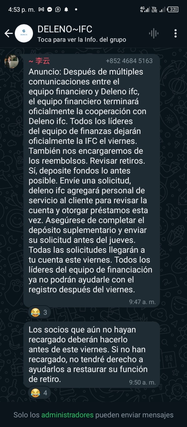 Negación de retiro. Retención de dinero DELENO IFC.