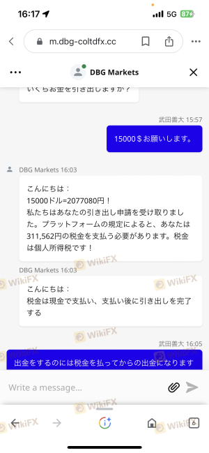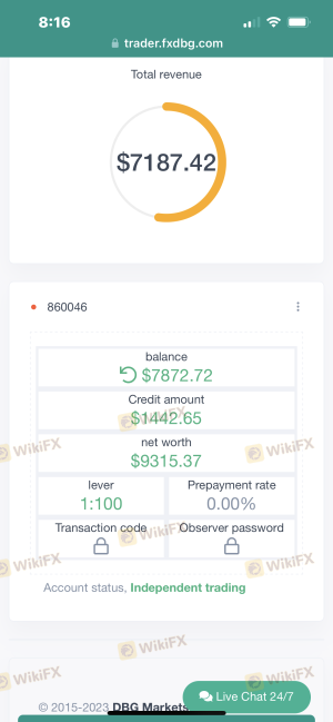 tengo una cuenta existente con con DBG Markets por un total de $ 9317.00. no me permitirán retirarme. han cortado toda comunicación.