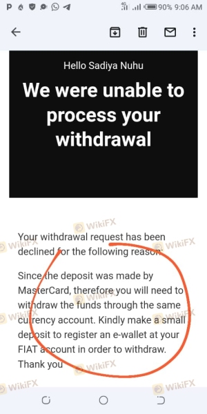 mi cuenta fue verificada por completo y después de obtener ganancias, bloquearon mi billetera para retiros, eliminaron mis datos y solicitaron nuevamente los documentos. He enviado los documentos y no responden, después de contactarme en el chat en vivo, eliminan nuevamente los documentos y dicen que su software no acepta mis documentos y también me tratan si no los cargo pueden suspender mi cuenta. ¡Envié las 4 veces y se negaron, lo que antes de obtener ganancias lo habían aprobado! ELLOS SON UN CORREDOR DE ESTAFAS QUE NO PERMITEN RETIRAR !!!! CONTACTE A LOS REGULADORES Y ELLOS INTERVENIRÁN DESPUÉS DE QUE TENGAN VARIAS QUEJAS !!! NO DEJES QUE SE QUITEN TU DINERO. PUEDO DIVULGAR EL ESQUEMA DE LA COMPAÑÍA.