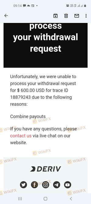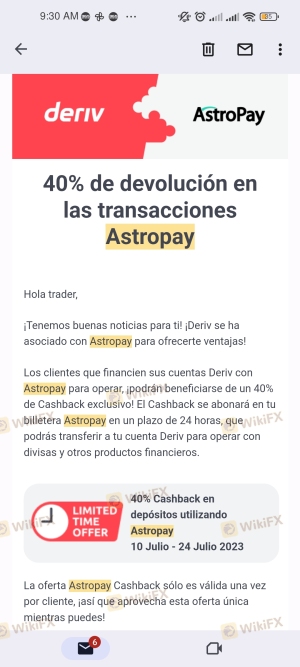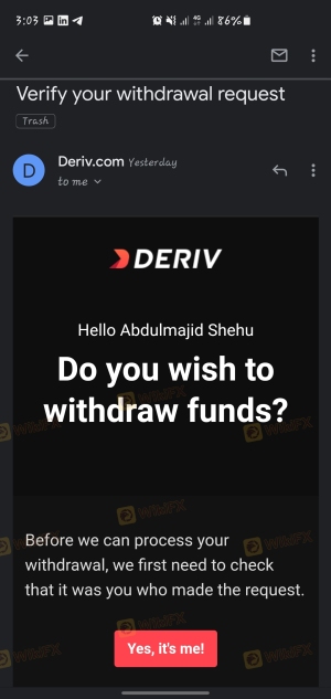 Derives una estafa sospechosa. No recomendamos comerciar con ellos. Si ya está operando conDeriv le recomendamos que deje de depositar cualquier cantidad de fondos de inmediato con ellos, he depositado mi dinero y sigo operando, pero cuando solicité el retiro, ¡simplemente siguen rechazando mi solicitud de retiro sin ningún motivo!