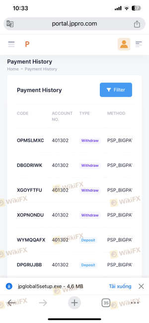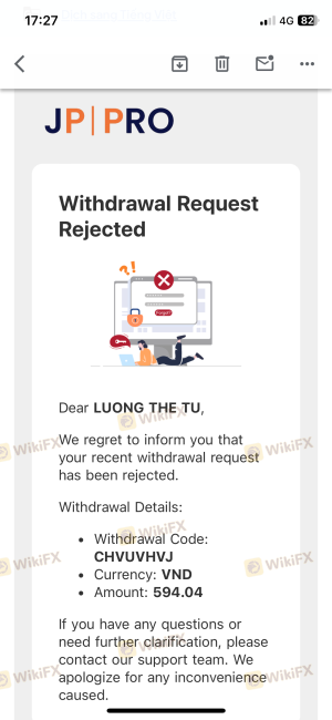 Abrí una cuenta de trading en JP PRO a principios de marzo de 2024. Mi número de cuenta es 404922. Deposité 5500 USD en la cuenta para operar. Durante el proceso de trading, el personal de señales de la plataforma de solicitud me pidió que depositara otros 10,000 USD para actualizar a una cuenta VIP y poder retirar dinero. Pero mi familia no tenía las condiciones. Específicamente, el 20 de mayo de 2024, hice una orden de retiro de 102 USD pero el intercambio canceló la orden y no permitió el retiro. Luego llamé y envié un correo electrónico con una foto al servicio de atención al cliente del intercambio y me respondieron "en proceso". El 27 de mayo de 2024, hice otra orden de retiro de 5000 USD pero el intercambio canceló la orden y aún recibí la misma respuesta de "en proceso de verificación". Estoy muy frustrado porque esta es la cantidad de dinero que ahorré para prepararme para una cirugía de riñón en julio de 2024, pero el intercambio deliberadamente retrasó muchas veces sin permitirme retirar y esperó el día en que me rindiera para apropiarse de mi dinero.
