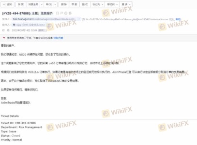 Hice un depósito de $1,000 en la plataforma AximTrade el 7.1 y participé en su evento de bonificación. Acabo de captar una ola de precios de mercado y mi cuenta básicamente se duplicó. Quería seguir operando, pero al día siguiente de repente recibí un correo electrónico que decía que había violado su bono. Regulaciones, se deducen todas mis ganancias y solo se puede retirar el capital. Abrí la cuenta, se dedujeron las ganancias y la cuenta también está prohibida. En este momento, estaba muy asustado. , y luego preguntó al servicio de atención al cliente por qué se violó la violación. El servicio de atención al cliente dijo que no estaba claro y que necesitaba enviar un correo electrónico para preguntar. Envié un correo electrónico para pedirle a la plataforma que proporcionara pruebas de mi infracción y la plataforma respondió que no se lo revelaría al cliente. Creo que dado que cree que violé las reglas y deduje directamente los fondos y bloqueé la cuenta, debe haber pruebas suficientes, de lo contrario será un caos. ¡Es totalmente tu propia opinión! ¿Cuál es la diferencia entre este comportamiento y la plataforma negra? No tengo éxito en esta apelación. Espero que la plataforma de protección de derechos pueda ayudarme, y espero que la plataforma pueda restaurar mis ganancias. Si insiste en deducir mis ganancias, espero que pueda proporcionar pruebas suficientes para convencerme. De lo contrario, no hay base ni evidencia, solo confíe en su juicio personal, la ganancia es ilegal, la pérdida es normal, ¡defenderé mis derechos hasta el final!