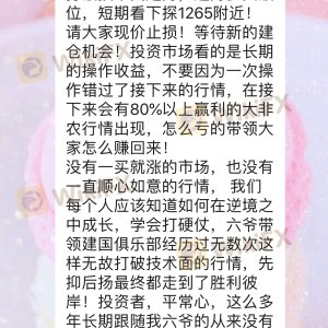 Fui arrastrado por un maestro a un grupo de bolsa de valores. El maestro participó en una transmisión por Internet en vivo para hablar sobre acciones. Hubo 4 maestros, incluyendo Long Kun (ayudante), Zhao Jianguo (seis señores), un cuchillo (Wang Guoxin) y el operador de dios (Fang Hai). En los tres períodos de tiempo, las acciones se hablaron en la sala de transmisión en vivo por la mañana, a la mitad y por la tarde, y luego, los inversores minoristas se reunieron para deshacerse del corte de los puerros y los activos se duplicaron. Luego, Liu Ye llevó a los miembros de la fundación del Club Nacional a unirse. El ayudante dijo que el objetivo de ingresos de la acción de duplicación de activos anterior era del 400%. Ahora, debido a la unión del Sexto Club de Liderazgo Nacional, el objetivo de ingresos se establece en el 600%. Luego se divide en diez regimientos para realizar simulacros reales todos los días. Después del depósito, fue el comienzo de la pesadilla. Liu Ye dirigió al gran ejército a operar. Primero, la posición era del 30%. Más tarde, 60%, 80%, y el almacén completo. Es concebible que el resultado sea una pérdida. Durante el período, también hay dinero, pero al final, gana menos y pierde más. El dinero perdido y el principal se pagan.) Los beneficios de los 5 millones, 3 millones y 1,5 millones de miembros que son guiados por los ayudantes son rentables. Más tarde, el ayudante dijo que los seis maestros están en mal estado. Llegó a liderar a las grandes fuerzas para operar y comenzó. Ganancias, y más tarde pérdidas, y dijo que su estado no es bueno, se ajusta o no está lleno de depósitos, y luego informa el informe, no siga las instrucciones del depósito completo, lo interrogará, no siga las instrucciones para expulsar al Ejército Dragón. Almacén completo, gritando un solo pedido para revertir, el resultado también termina con una pérdida.