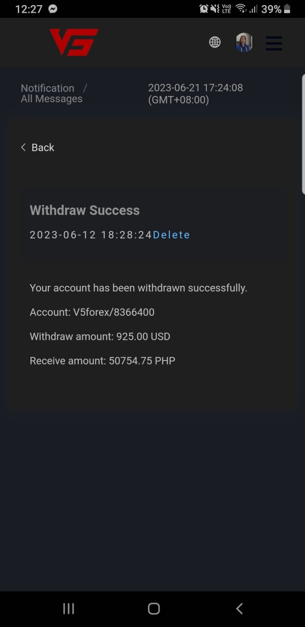 V5 forex is not able to release my withdrawal request for the value of 900$