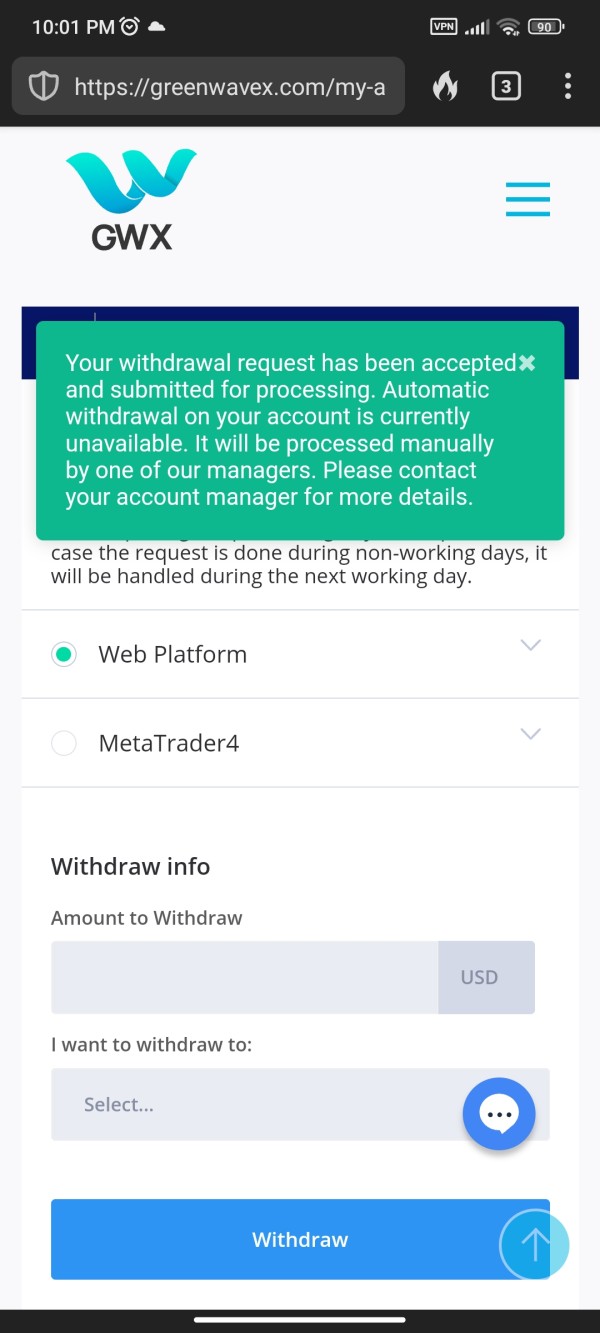 Kapag nagwiwithdraw ako, sinasabi nila sa akin na hindi naka-enable ang automatic withdrawal sa account, kaya dapat kong makipag-ugnayan sa aking account manager. Ang aking manager account ay hindi na kasama sa broker at ilang beses na akong sumulat sa suporta ngunit wala akong natanggap na tugon mula sa kanila. May higit sa 2 libong dolyar sa account ko. Mahigit isang taon na ito sa akin ngayon.