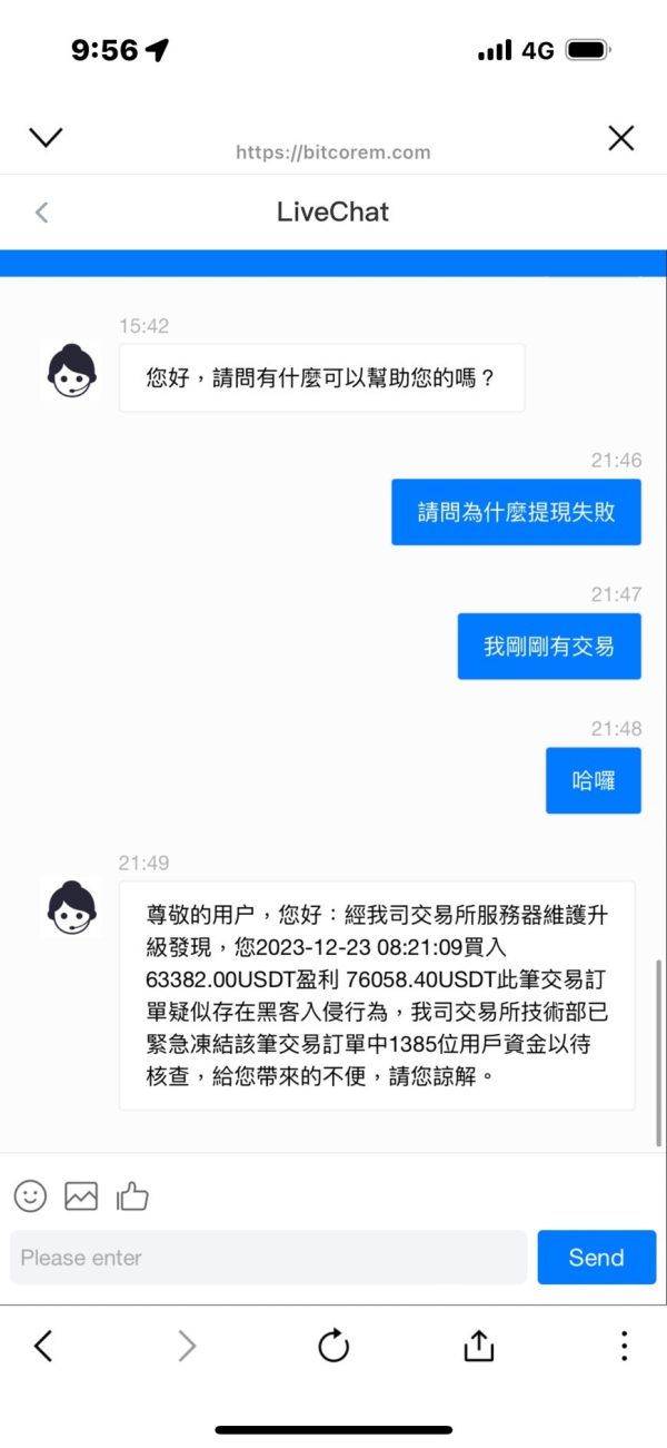 Isang kaibigan ang nagpakilala sa akin sa pag-iinvest sa platapormang ito at sinabi niya na may paraan siyang matutulungan ako na gamitin ang aking maliit na halaga upang makakuha ng malalaking kita. Bilang resulta, ang pera ay naipit dito na may higit sa 76,000 dolyar ng Estados Unidos. Hindi ko magawang mag-withdraw ng pera. Sinabi ng serbisyo sa customer na ilegal akong kumita sa pamamagitan ng hacking, kaya't ito ay pinigilan nila. Ito ba ay makatuwiran?