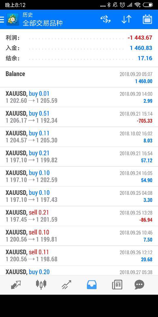 黑平台 滑点严重 开始就大亏 后来一路亏完