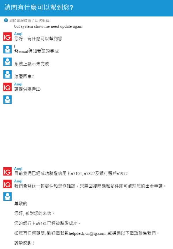 投訴書信來往了好幾次,一下email通知認證不行,一下可以。詢問客服還必須忍受客服的脾氣,不信邪的可以繼續送錢給他們。對了,交易會讓你平不了倉,要用的小心點。一言不合就把你帳戶標記活動異常