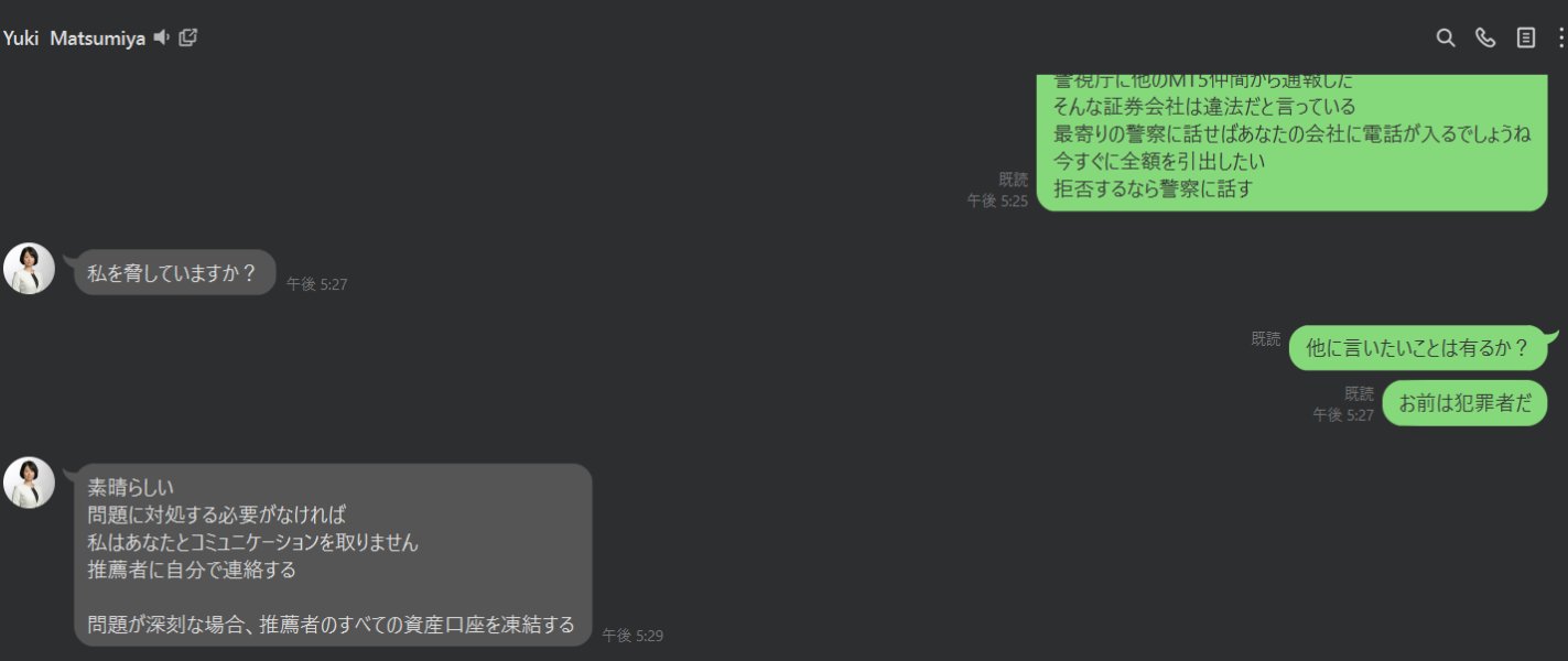 TechnologyLatestのアカウントマネージャーが税金を別途払えと要求してきて、今までトラブルになっていました。 再三に渡って借金を申し込んで資金を注入しろと言ってきて、 それもトラブルになっていました。 他の人々に相談したところこの会社は詐欺会社だと判明して、 今までにも被害者が多くいるそうです。 下に画像を用意してあり、 その会話も記録しています。 TechnologyLatestのカスタマーに連絡すると、 このマネージャーは正規のマネージャーのようです。 そして推薦者から殺すと何度も脅迫されていますけども、 その理由はマネージャーが資産を凍結すると脅しているからです。 このTechnologyLatestは存在してはならない会社です。 法の裁きが必要になります。