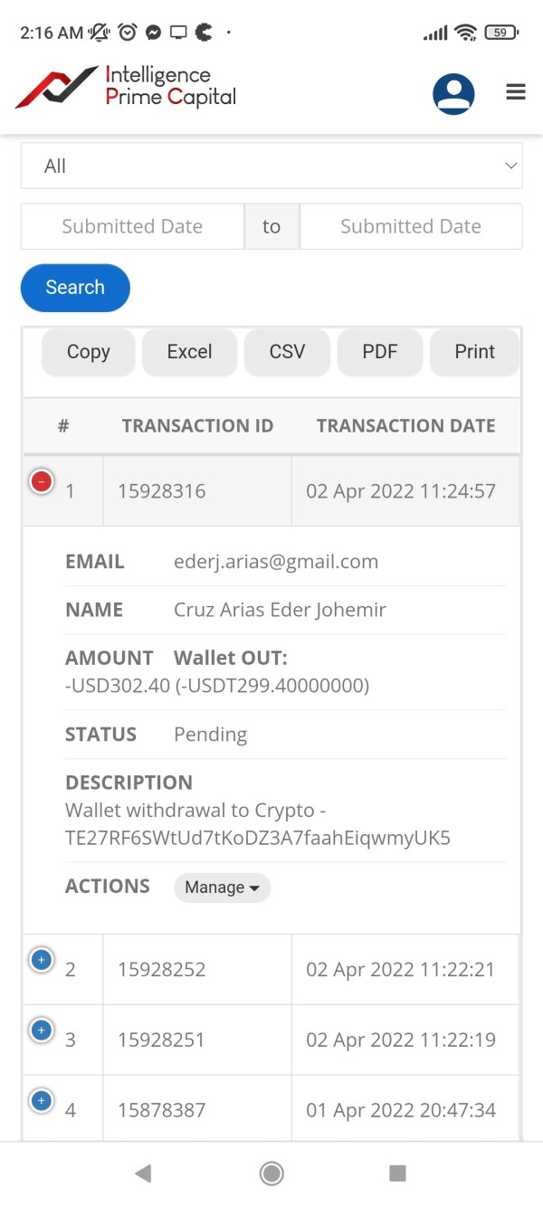hice un retiro de mi cuenta MT4 a mi wallet interna ya hace 2 semanas, la plataforma cayó por un momento y al final el dinero se perdió no apareció nunca más y el 2 de abril hice un retiro de $300 que tampoco fue aprobado y sigue en pendiente, IPC no está pagando desde hace 3 semanas