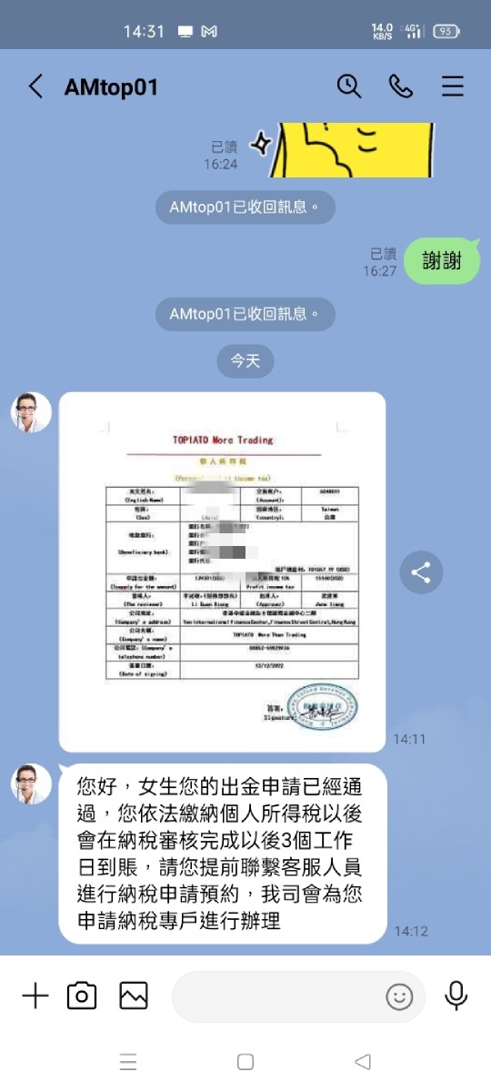 已全部出金,也答應日期也匯稅金,沒照時間匯入款項