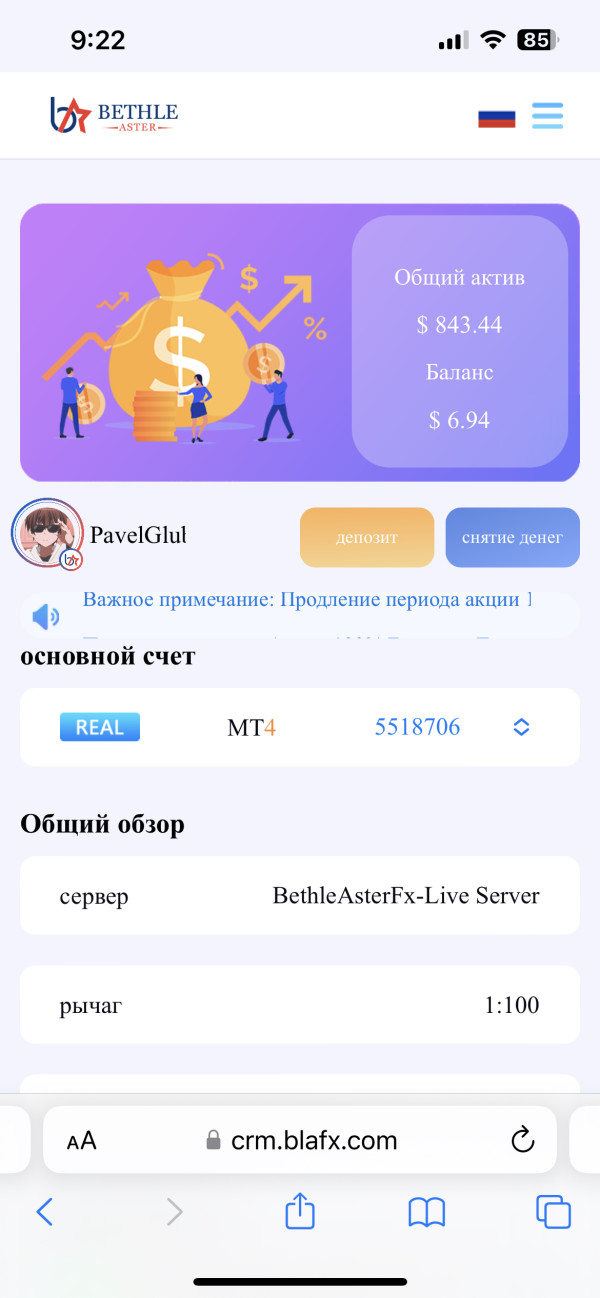 Blafx не могу вывести деньги
