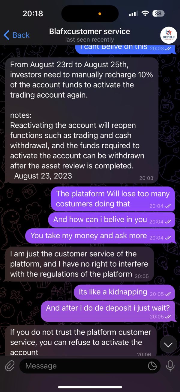 They simply kidnapped my money, demanding that I deposit 10% of my invested money in order to use my account. In addition, they did it without prior notice, and did not notify me of this conduct, and on top of that they gave a period of 2 days to make the deposit, unbelievable.