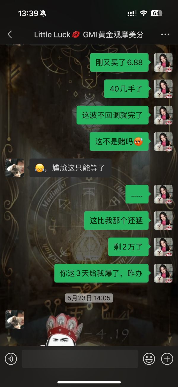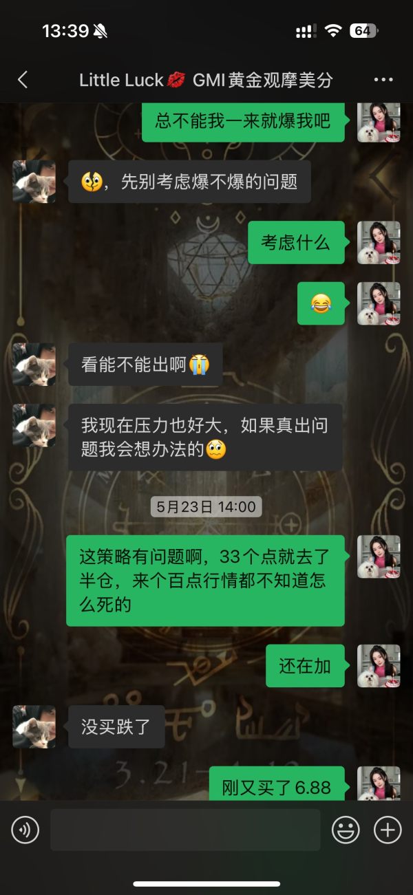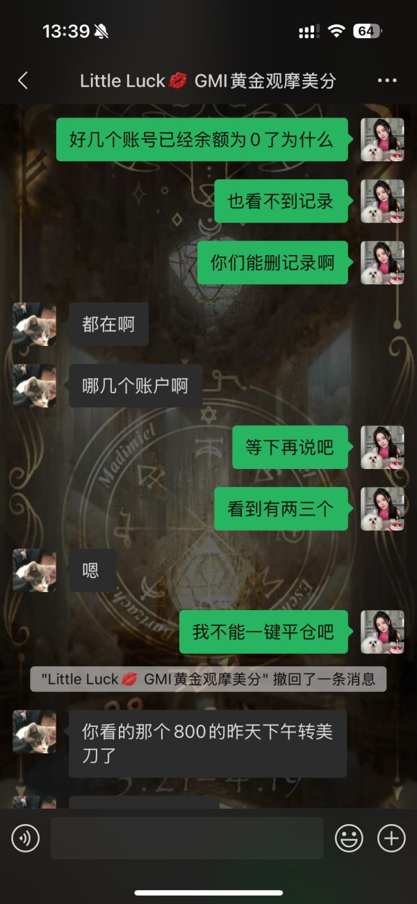 在注册这个号前,观察了一段时间还行,然后业务员三天两头追着我开户入金,天天追着我想着开一个美分账户先试试怎么样,然后业务员跟我说开3个利益最大化,巴啦巴啦一堆,然后我没办法开了两个800刀的美分账户。跟我说开8倍,21号开始正式跟单进去,21号22号还可以,23号那天行情波动不过30几个点,账户做单逆势一路加仓到40几手,还在不停涨,账户不停逆势加仓,30几个点的波动,8万多美分的账户就基本要爆了。中途账户浮亏到4万多的时候感觉不对劲,要求业务员帮我一键平仓,告知我平不了,只能等行情结束顺利出来或者爆仓。实在没有办法的情况下,我只能自己一单一单的手工停掉。才勉强两个8万美分的账户留住了不到一起4万美分的本金。过程实在太快,客户经理为了推卸责任一直在说老板不负责任什么的,我严重怀疑我进入的是一个杀猪盘,平台吃客损,不顾及客户的利益