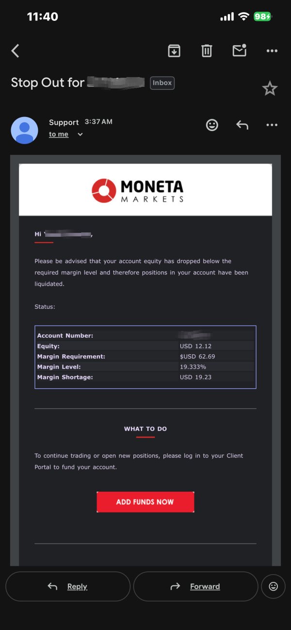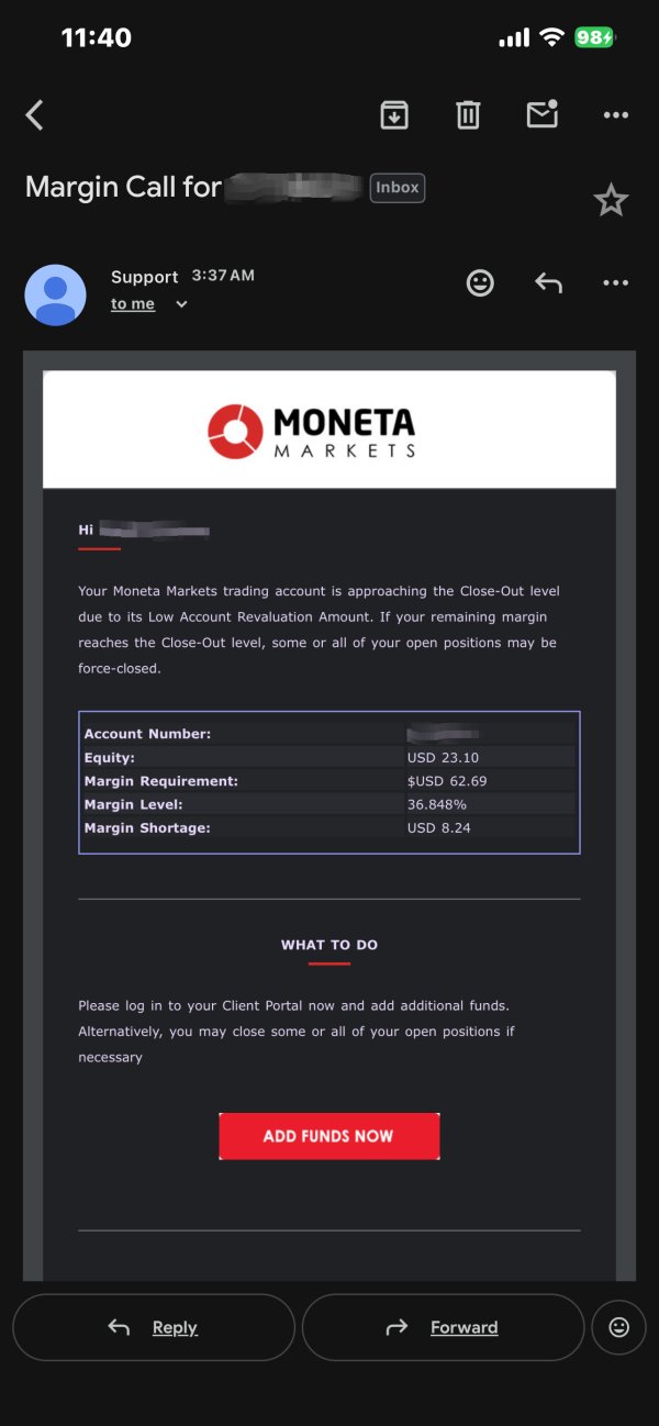 Title: Unfair 15-Minute Execution Delay Review: I am reporting a severe technical failure by Moneta Markets. On March 23, 2026, my account was unfairly liquidated due to a major server synchronization error. Key Evidence: 1. Execution Gap: My first positions were closed at 03:37, but the rest were delayed until 03:52. This 15-minute gap during volatility is a clear system failure. 2. Credit Issue: There was a discrepancy between Balance and Equity regarding the credit provided. The broker failed to provide a transparent margin call calculation. 3. Refusal to Help: Support refuses to acknowledge this 15-minute delay and claims it was "normal," which is impossible for an automated system. I have filed a formal complaint with the FSA Seychelles. I warn all traders to stay away from Moneta Markets until they refund my balance caused by their technical glitch.