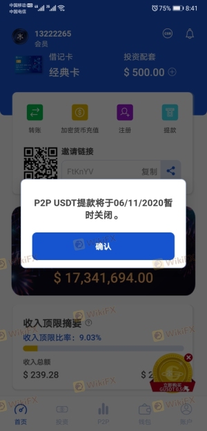 Hindi maaaring mag-withdraw ng mga pondo nang normal mula Oktubre 19. Ngayon, ang web ay hindi pinagana.
