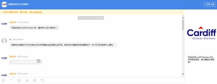 本人交易账户1570109在卡迪夫交易,申请出金20日到今天一分钱没到账,问官方客服,官方客服态度语气及其恶劣,除了不正面回答问题外还刻意关闭聊天界面,在我之前我两位朋友一起申请的出金接近半年时间没给出完她俩的账户分别是1570108和1570110她俩一个是几千美金一个接近一万美金,搞笑的是1570110每个星期给出100美金,而1570108已经近3个月没给出金了,卡迪夫还在全国招摇撞骗,还在搞千人千城的骗局,这边开发新客户那边只要入金交易几个月钱就取不出来,这个平台从2018年就出现出金困难的问题