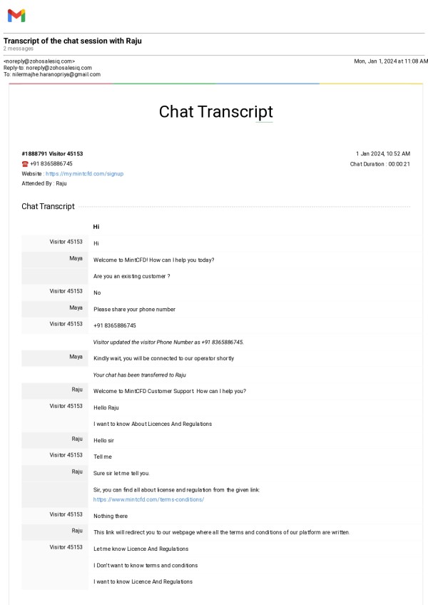 Beware of MintCFD! I asked for licenses and regulations through live chat, but they couldn't provide any. It seems they operate without proper authorization. Avoid this platform to protect yourself from potential scams and financial risks. Stay Away from this Ponzy Scam Platform