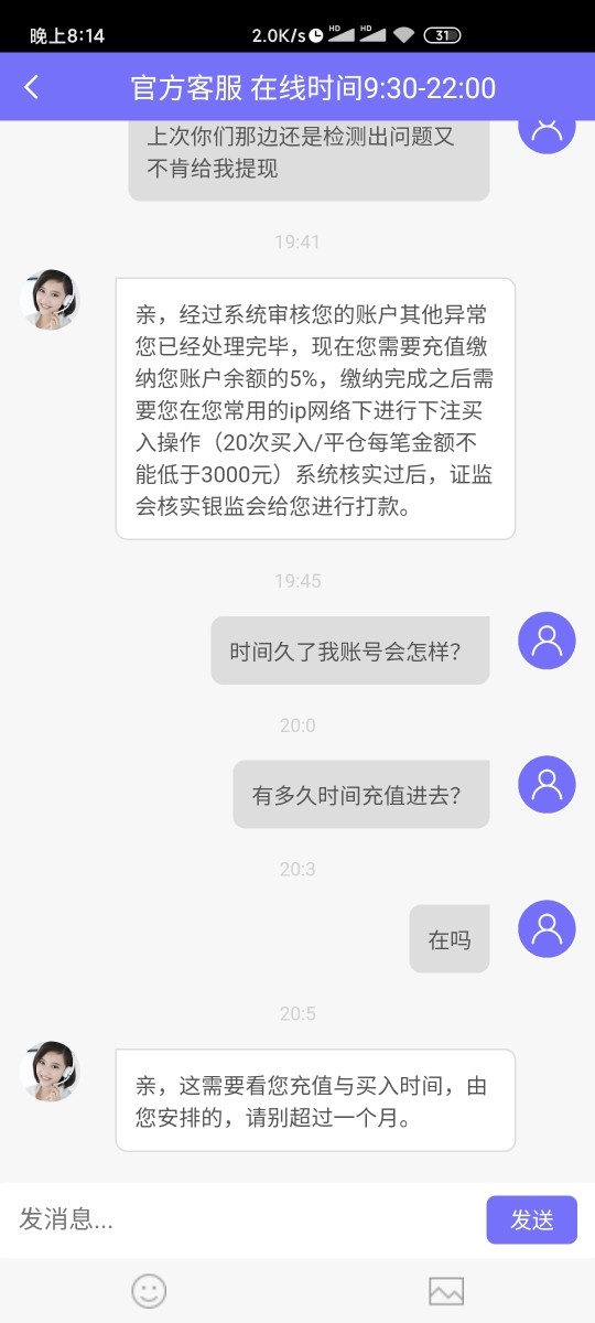 刚刚开始也是加这个人的微信一直不停发信息和朋友圈诱导我怎么赚钱,之后就是充值进去试下刚刚开始有个老师带着你去赚钱,就是赚来的钱之后提现就是出问题,跟上面那个曝光朋友一样的,刚刚开始说补足数据才可以提现,之后补足7万左右提现不了,又说你的银行卡号错要修改也要交保证金30%,又要交16万左右,之后又提现不了说信用度不足又要充值,找微信加我那个没有办法,说找客服那边处理提现不了,之后一直不停说刷流水账不足,无底洞的不停一直诱惑我恐吓我要充值钱进去才可以提现,不然冻结账号,之后还是给平台冻结账号,已经报警处理,看到这个事我想问问曝光朋友有没安装app那个二维码,麻烦发我现在没法登录进去,要安装二维码给警察可以快速查出来,微信加我那个已经拉我黑名单,怎么也联系不上,有安装app软件麻烦发上来给警察尽快破案,谢谢