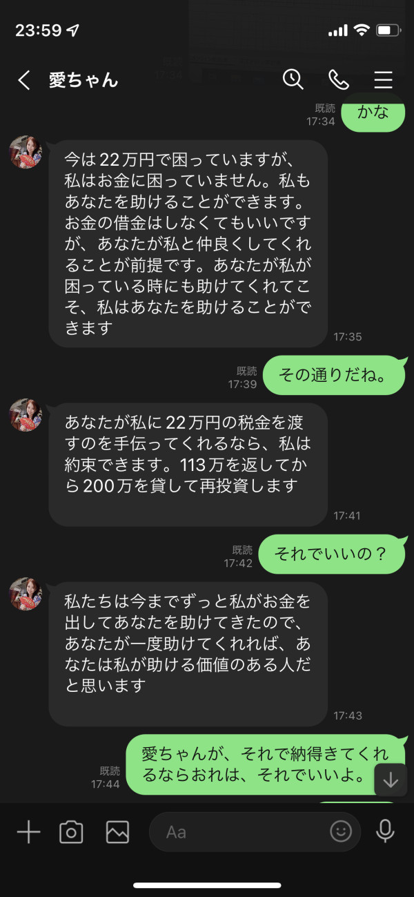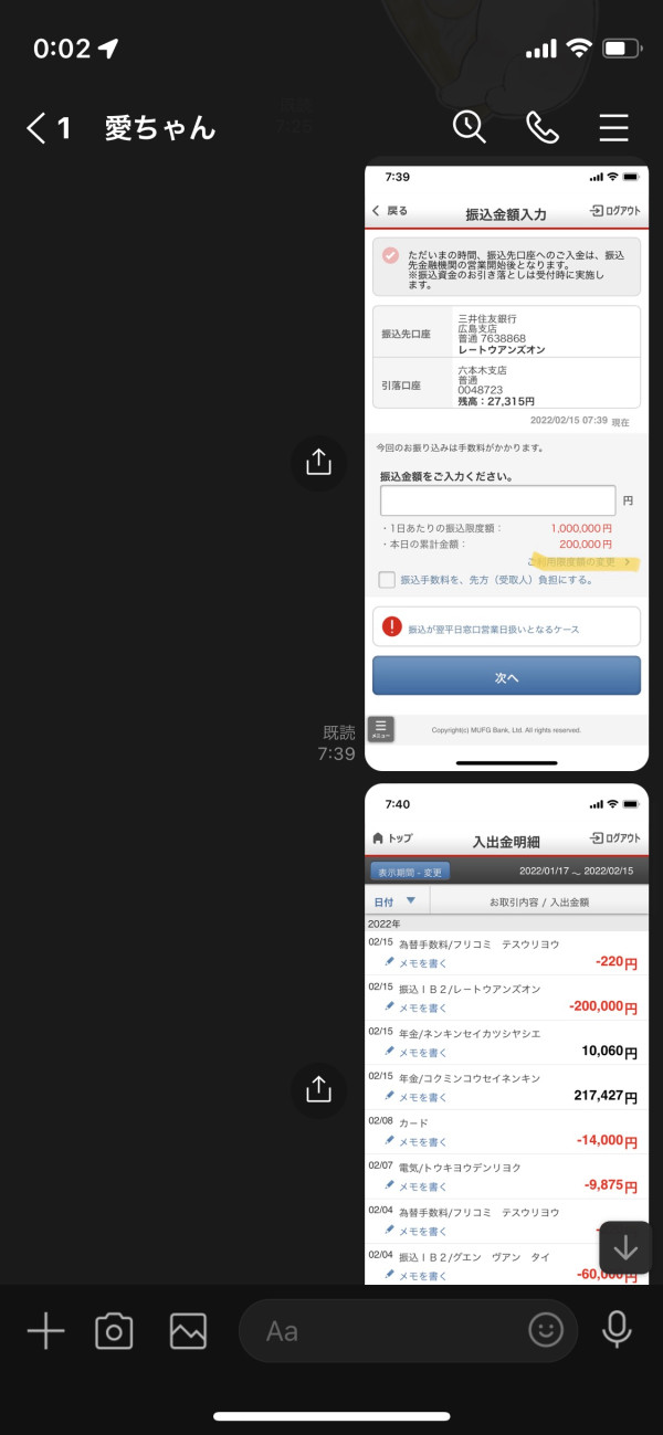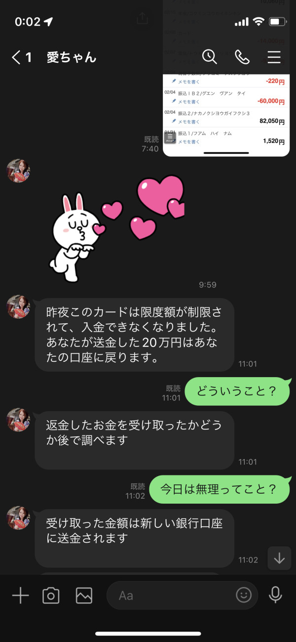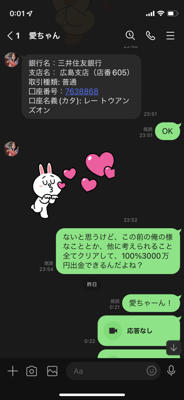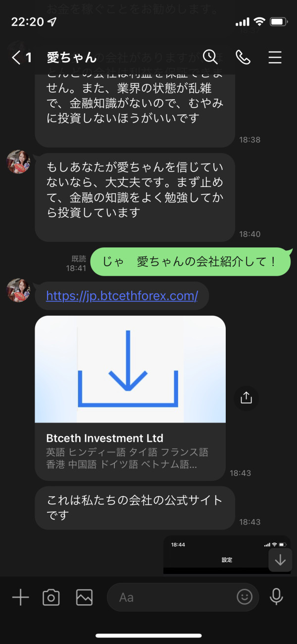 自称Btceth 社員の愛ちゃんが3000万円を出金するのに、20万円足りないので、貸して欲しいと言われて、振り込んだ後から、全く連絡が取れなくなった。①