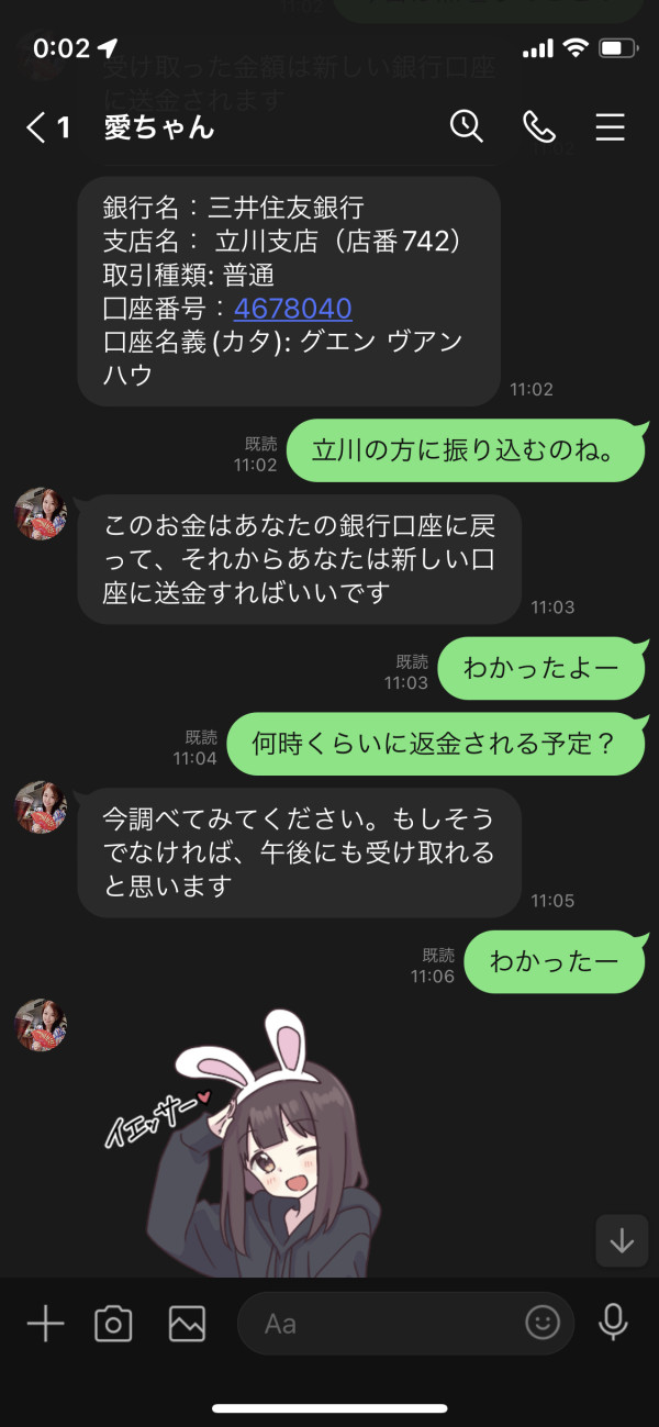Après avoir transféré 200 000 yens, je ne peux plus contacter du tout.