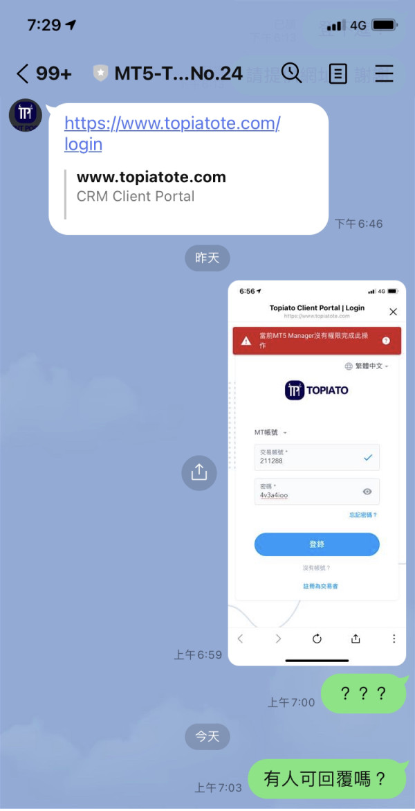 TOPIATO 不出金,擺爛不回覆,還封鎖帳戶,請平台協助追回款項