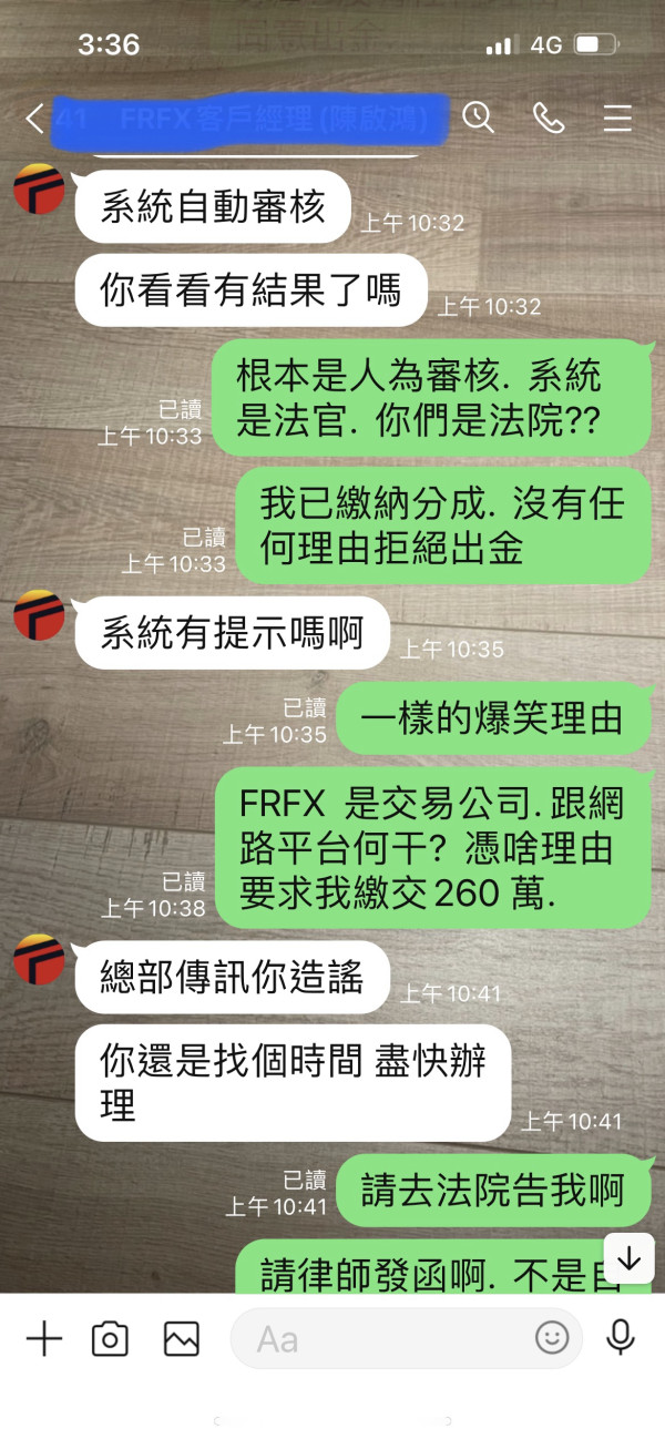 FRFX 黑暗平台. 交易後惡意不給出金