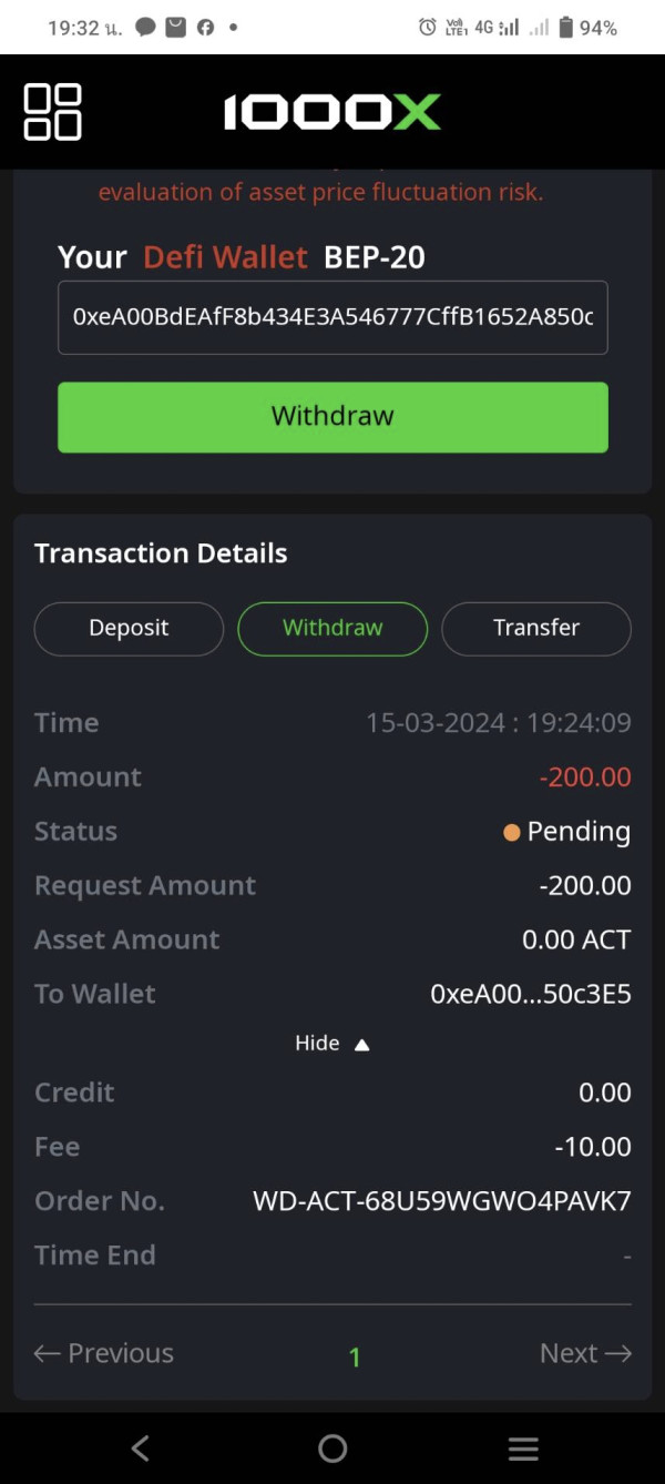 กดถอนเงินจำนวน 200$ ตั้งแต่วันศุกร์ที่ 15 มีนา จนปัจจุบันก็ยังไม่ได้รับเงิน. ตอนฝากครั้งแรกโบรกเกอร์แจ้งให้ใช้บัญชีบิทคับในการโอน แต่พอจะถอนโบรกเกอร์แจ้งให้ใช้บัญชี Metamask ในการรับเงิน ซึ่งดูแปลกๆและไม่มีความน่าเชื่อถือ เพราะมีหลายคนในตอนนี้ที่ไม่สามารถถอนเงินได้