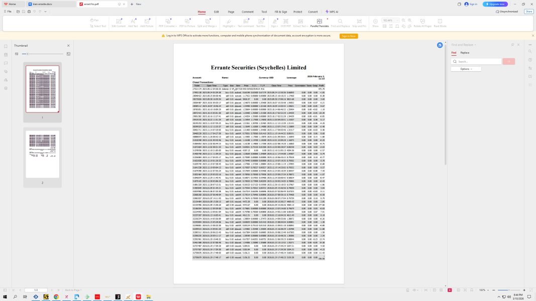 Errante is the name of Errante Securities (Seychelles) Ltd. Errante Trading (https://errante.com and https://errante.eu), a securities trading platform registered with CYSEC and FSA Seychelles under the management of Notely Trading Ltd, took advantage of its license from a reputable global financial regulatory body to erase all my profits (MT4 trading account: 6034920) from September 24, 2025 to January 29, 2026. They claimed the reason was a system error in their MT4 software. I am writing this review to inform all Errante clients whose accounts were wiped out on January 29, 2026 (when gold prices fluctuated sharply, dropping 500 points and breaking historical price range records) that this was due to a system error in their MT4 software. All clients have the right to file a complaint with Errante requesting a refund of the lost funds at that time. I am sharing this information so that all Errante customers (including those in Europe) are aware and can file a complaint and get a refun