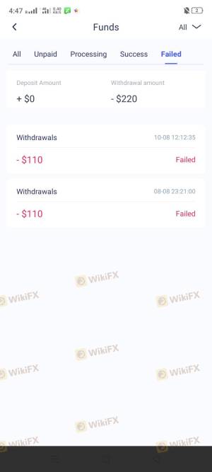 Les retraits sont toujours rejetés pour des raisons peu claires. Site frauduleux.
