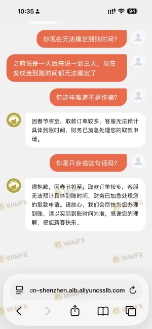 10 तारीख को, मैंने $1,650 की निकासी का अनुरोध किया था। शुरुआत में, उन्होंने कहा कि यह एक कारोबारी दिन के भीतर आ जाएगी। 11 तारीख को, ग्राहक सेवा ने उल्लेख किया कि इसमें एक से तीन कारोबारी दिन लग सकते हैं। फिर आज, 12 तारीख को, जब मैंने फिर से ग्राहक सेवा से पूछा, तो उन्होंने कहा कि वे इस समय आगमन की तारीख की पुष्टि नहीं कर सकते।