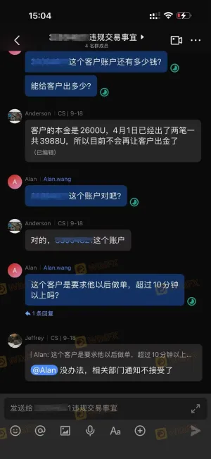 ओटीएसओ उस प्लेटफॉर्म का एक ठेठ उदाहरण है जो "अवैध व्यापार और उच्च आवृत्ति व्यापार" का बहाना बनाता है, लेकिन इसका सार एक जुआ मॉडल है जिसके तहत ग्राहक का मुनाफा प्लेटफॉर्म का नुकसान है। वे बिना किसी उचित स्पष्टीकरण के ग्राहकों को निकासी की अनुमति नहीं देते, और निकासी रोकने के लिए आंतरिक ग्रुप चैट में सीधे संवाद भी करते हैं। देखो वे कितने बेशर्म हैं! पहले, ओटीएसओ का टीएसकेएफएक्स नामक एक धोखाधड़ी प्लेटफॉर्म से सीधा संबंध भी था—टीएसकेएफएक्स से निकासी न कर पाने की शिकायत करने के बाद, उपयोगकर्ताओं के खातों को जबरन ओटीएसओ प्लेटफॉर्म पर स्थानांतरित कर दिया गया था।