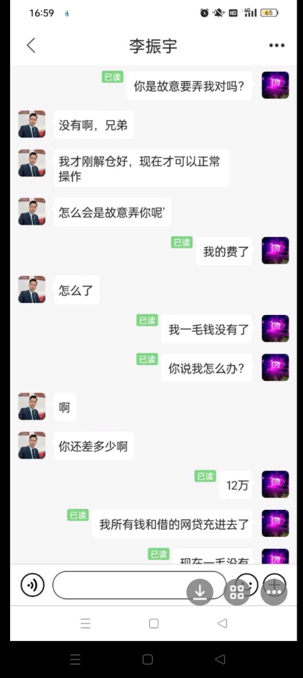 系统后台操作 双向锁单 不让平仓 幸亏朋友阻止没充 快手一个女拖加我qq好友 各种关心 诱惑我下载古转金来投资赚钱 抱着试试的态度跟着投点 这时候来一个骗子 说要加大本金投资 他一天帮我赚多少 总共投了14万 系统后台双向锁单 不让平仓 导致被骗 希望有关部门彻查林少华 李振宁 杨经理 3个大骗子 迟早被抓
