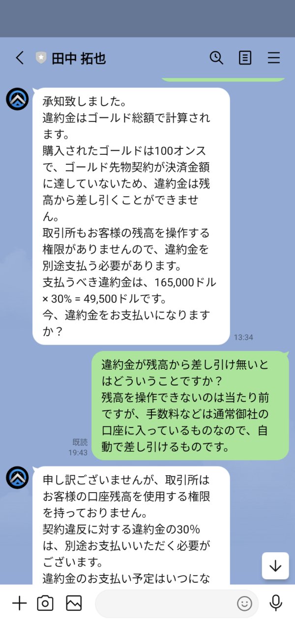 मुझे समूह में आमंत्रित किया गया था, और चर्चा उच्च डिविडेंड स्टॉक से विदेशी मुद्रा निवेश पर बदल गई। मैंने देखा कि मिस्टर होंगो और उनके दोस्त लाइन समूह में दूरस्थ चालकों के रूप में पोस्ट कर रहे थे। यह तुरंत रद्द कर दिया गया, लेकिन मैंने और ध्यान से देखा। पुष्टि हुई कि वे अलग-अलग नामों के तहत लाइन पर एक ही सामग्री पोस्ट कर रहे थे और वे एकाधिक भूमिका निभा रहे थे। प्रारंभ में, उन्होंने कहा कि जुर्माना उनके एफएक्स खाते से कटेगा, लेकिन उन्होंने अपनी कहानी बदलकर कहा कि उन्हें अलग से लगभग 7 मिलियन येन का भुगतान करना होगा। मेरे खाते में शेष राशि थी, इसलिए मैंने उनसे इससे पैसे निकालने के लिए कहा, लेकिन उन्होंने मुझे बताया कि यह एक अनुबंध का उल्लंघन है और अगर मैं भुगतान नहीं करता हूँ, तो मेरा खाता जमा हो जाएगा। मैंने ईमेल के माध्यम से ऑस्ट्रेलियाई समर्थन से संपर्क किया, लेकिन जब मैंने उन्हें यही बात बताई, तो वे मेरे संपर्क से चूक गए। मैं अब अपने खाते में लॉग इन नहीं कर सकता। मैंने 2.8 मिलियन येन भुगतान किया और मेरे खाते में 160,000 डॉलर थे।