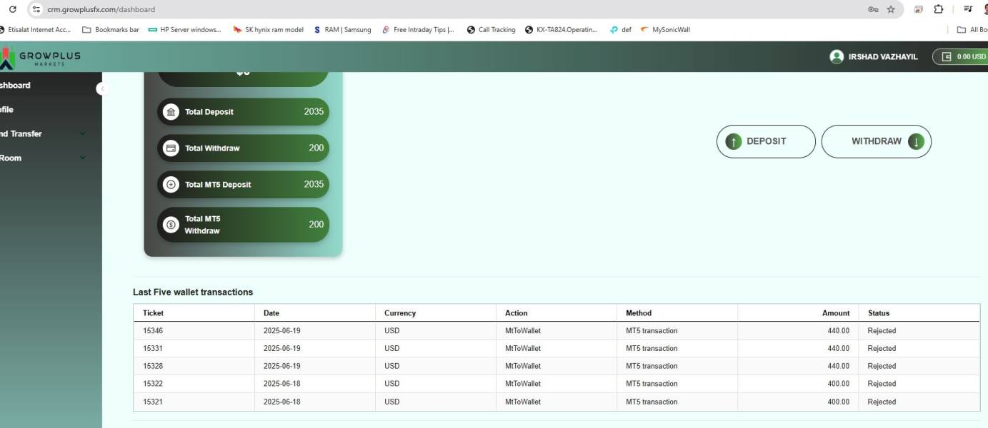 Avoid opening an account with GrowPlusFX (growplusfx.com). They operate like a scam broker and are highly suspicious. Here are some serious issues I experienced: They act as a broker but make incorrect trades intentionally, causing losses—even when you use their “free RM (Relationship Manager)” service. It’s extremely difficult to withdraw money from your wallet to your bank account. Initially, they allow you to withdraw small amounts to gain your trust. After that, they block further withdrawals and require their approval—even if you have no open trades or positions. You lose control over your own funds. Please be very careful. This platform is not trustworthy. Once you deposit a larger amount, you will likely not get your money back.
