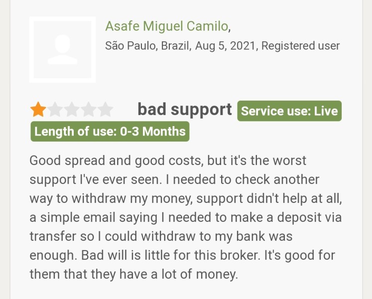 A client has complained that he was having problems withdrawing to his bank account and when he tried to contact customer support, they did not respond. The client is very disappointed with their customer service.