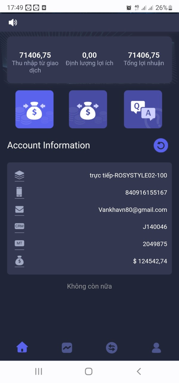 tôi đã đầu tư từ tháng 9-2022 tổng là 58,000$ và lợi nhuận giờ họ không cho tôi rút tiền và họ dọa tôi đến ngày 19-11 họ sẽ xóa tài khoản MT4 của tôi và tài khoản rút nạp của tôi.mong các nhà chức chách quốc tế và việt nam hãy giúp tôi