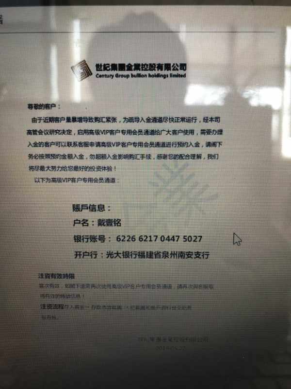 सेंचुरी ग्रुप बुलियन के एजेंट लॉन्ग कुन ने मुझे द्वेष निर्देश दिए