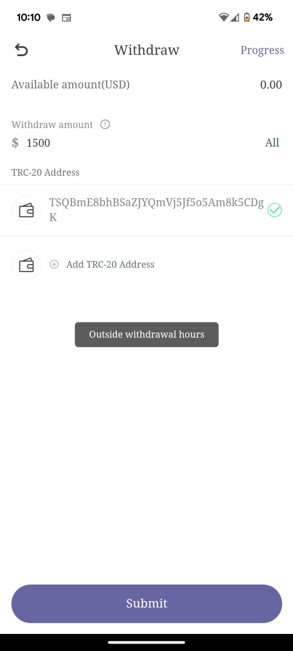 It's giving options to invest more money but I am unable to retrieve or withdraw from my account, stating that is out of withdrawal hours. They say until August 16th or after I would be able to do so, but seems it all is a scam.