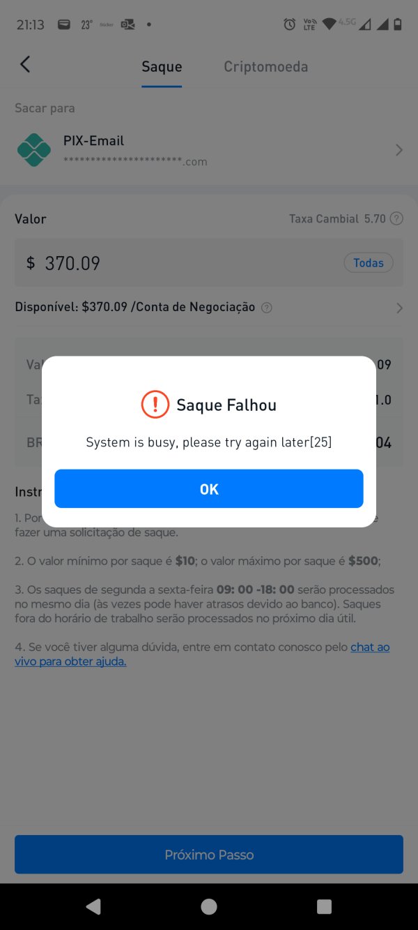 broker penipuan, Saya melakukan deposit sebesar $200 usd, Saya mendapatkan sedikit keuntungan dan ketika saya mencoba untuk menarik dana, muncul blokade yang ditempatkan oleh broker, "Sistem Sibuk, coba lagi nanti". Saya meminta bantuan kepada dukungan, tetapi mereka tidak memecahkan kesalahan yang disengaja ini. Jauhkan diri dari broker penipuan ini.