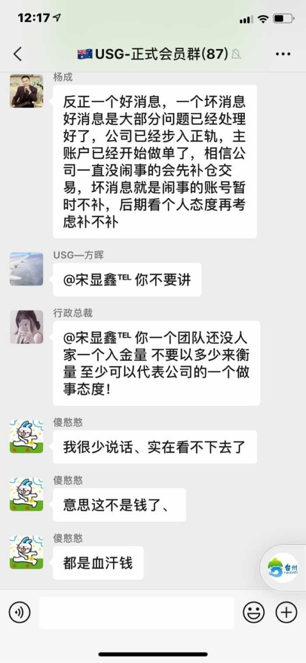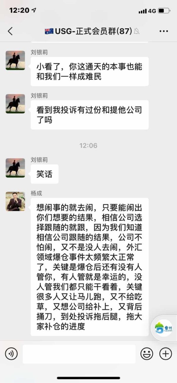 以杨强军为首,方耀飞,王建农、张慧慧、魏冬娇、叶三法的黑势力团伙通过高额利润诱骗资金进行外汇交易。宣传保本收益签合同。然后在一夜之间爆仓。然后威胁我们闹事就不补偿。到目前这些人员全部躲起来。还声称杭州公安厅有人。说一个刑侦政委是他们亲戚。 这是一个有组织有预谋的欺诈行为。公司宣传一个亿实缴的保障金担保。入金澳大利亚USG联准平台。由操盘手王建农操盘,宣传操盘手是美国回来的,年薪7000万。并且前五年一直在一家基金公司操盘。18年没有爆过仓。一月收益15%~30的的回报吸引投资,但实际情况都是虚假。我们会员发现公司虚假宣传要求出金。公司强制不让出金。然后在3月2号集体爆仓。造成大部分会员全部投资款亏损一分不剩的事实。给广大会员造成几千万的亏损,给社会造成了及不安定的环境隐患。 望扫黑组能够深入调查,深圳蕴德丰公司实际控制人杨强军等团伙性犯罪的恶行能够得到法律的严惩。给人民一个交代。严厉打击这伙带有黑社会性质的不法子