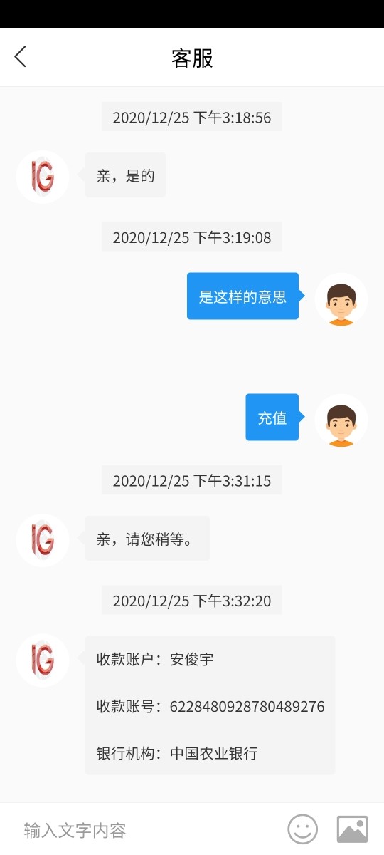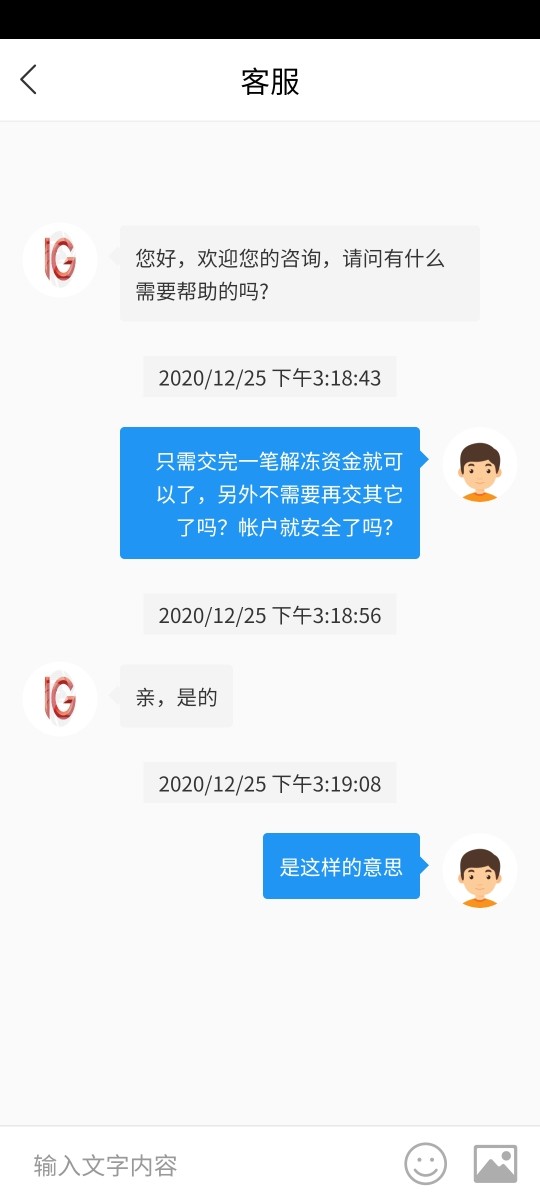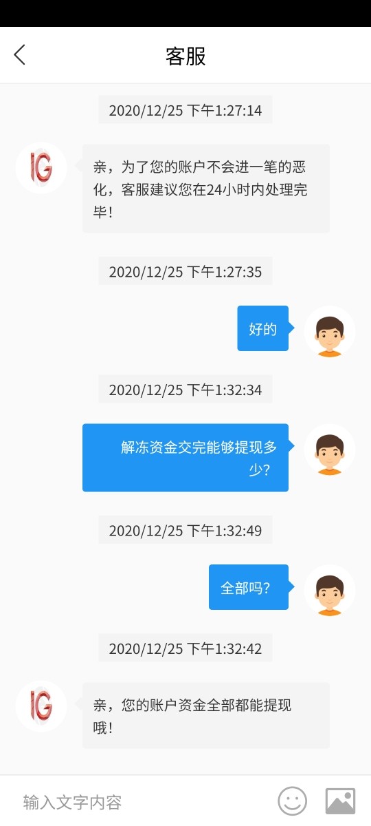 于12月21号下午3点钟左右,用们指定的聊天工具掌嗨,跟对方指导老师买英磅和美元的涨跌,时间都是60S,中途有一轮我没有跟对,说要补仓74700,于是我说没钱,对方就跟我说她帮我到她们团队能不能够借到钱?第二天晚上她说把我借到25000块,我自己充了五万,22号晚上开始,第二轮的数据操作,不知道怎么又错了两轮,结果数据跟不上他们一样,说又要补仓,这次我没钱,没有钱去补仓,于是第二天我去提现,发现资金账户被冻结,我跟客服联系,客服说只要缴足解冻资金就可以去提现了,我又跟对方联系,她说帮我想想办法,她们团队又借了25000,帮我充进去,我自己充了37550元,解冻资金交完后我就去提现了,还是提现不了,客服说信用分不够,要买信用分充值,信用分5000元一分,要买20分,要充十万,我才知道上当受骗,然后我就去报警了