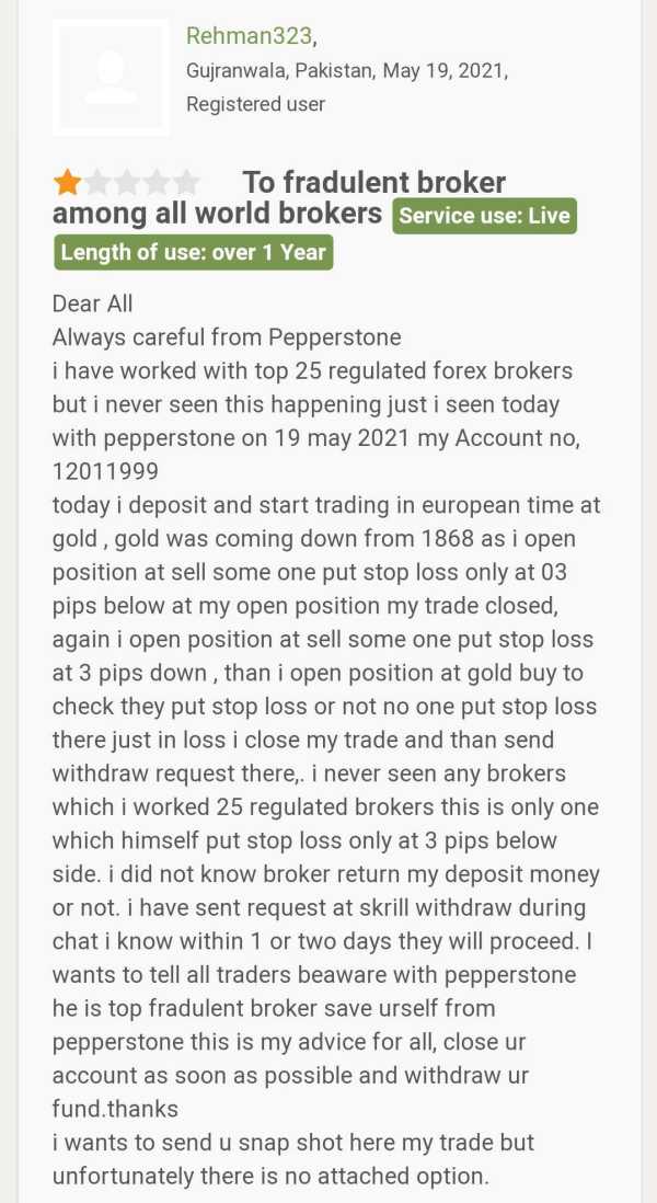 Complain received against Pepperstone.