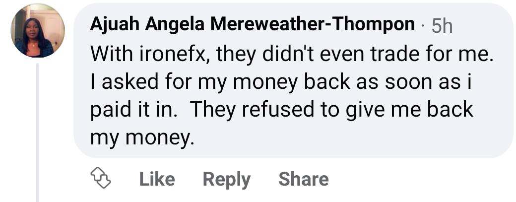 Ironefx scams their clients by not giving back their money. They also dont respond to phone calls or email. Big scam.