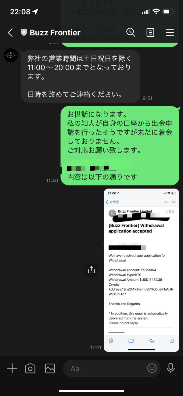 まず、こちらのCEOとされる人物がインスタグラムなどSNSでミラートレードを誘導し口座を作らせ現金手渡しや暗号資産での入金のみで対応しています。そして預けたら最後強制的に損失が出るまで含み損を放置し強制ロスカットを食らいます。 また自身の口座で自身でトレードしていても 結局は出金出来ません。最近になり私の知人が出金申請をしましたがあれこれ言い訳をつけて対応せず私の問い合わせには既読すらつきません。 この会社を使う事だけは絶対にやめましょう。