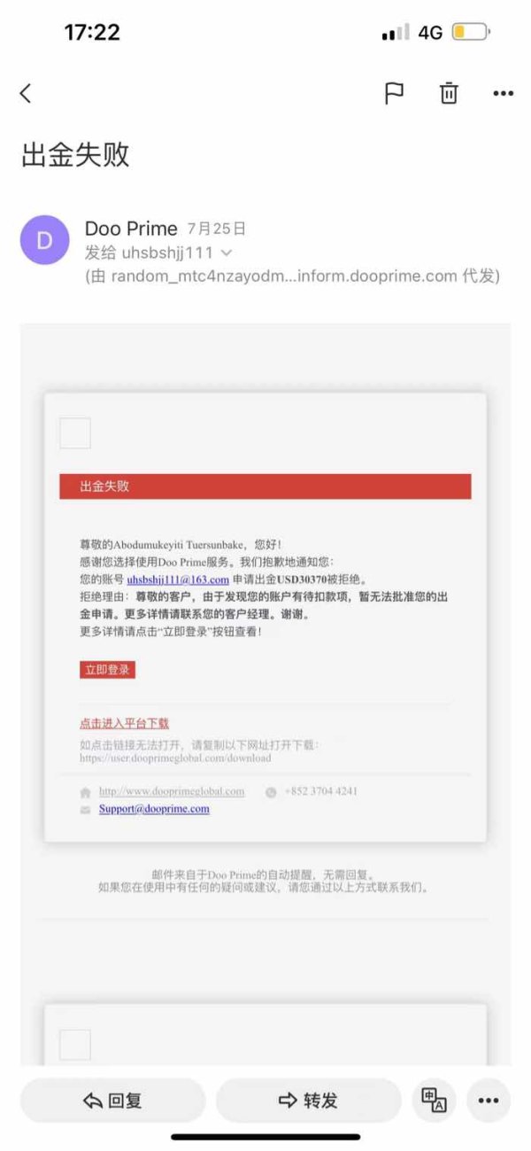 投诉德璞资本,入金了30000美金,七月初入金操作,出金盈利前几笔顺利到账,到后来无法出金,后台也登录不上了,联系客户经理和在线客服都不回复了,有可能跑路了,本金都还没出,出金本金被拒绝了